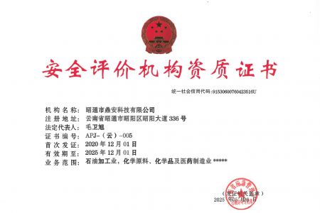 2003年11月10日,昭通市鼎安科技有限公司成立,初始主要從事第三方安全工程技術(shù)服務(wù),經(jīng)多年運(yùn)營,發(fā)展為多專業(yè)綜合科技平臺,為社會提供多種專業(yè)技術(shù)服務(wù)工作。 現(xiàn)公司注冊資金為1200萬元,公司法定代表人:毛衛(wèi)旭。公司主要業(yè)務(wù):安全評價、安全標(biāo)準(zhǔn)化評審、安全工程技術(shù)服務(wù);環(huán)境監(jiān)測、職業(yè)衛(wèi)生檢測、檢驗(yàn);法律訴訟及非訴訟服務(wù);司法鑒定、固定資產(chǎn)投資項(xiàng)目節(jié)能服務(wù);工程咨詢;工程測量測繪;安全教育培訓(xùn)等。是安全生產(chǎn)服務(wù)、安全教育培訓(xùn)機(jī)構(gòu),也是環(huán)境監(jiān)測和職業(yè)衛(wèi)生服務(wù)機(jī)構(gòu),同時也是綜合的檢測檢驗(yàn)、綜合科技平臺服務(wù)機(jī)構(gòu)。多年來為公、檢、法、司、軍、警、海關(guān)、仲裁、安監(jiān)、工礦商貿(mào)企業(yè)、社會團(tuán)體及個人提供多專業(yè)技術(shù)服務(wù)。